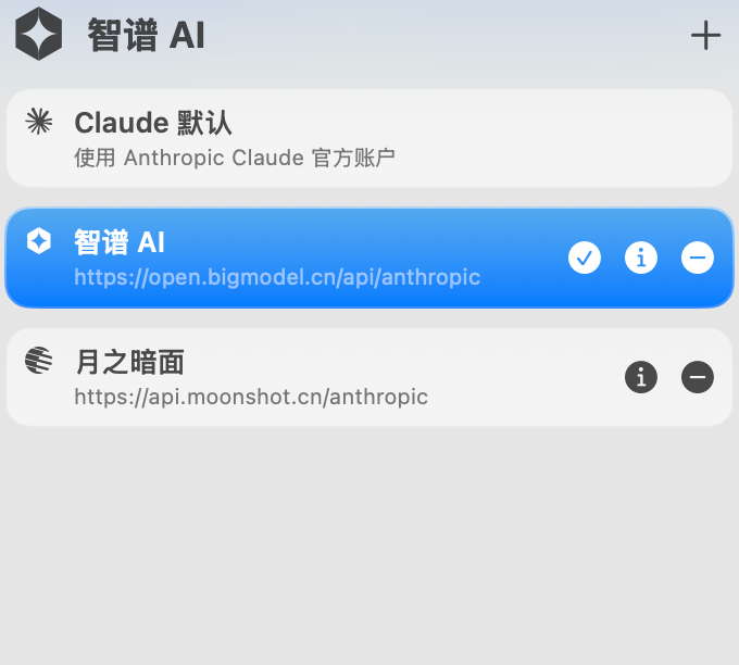 Claude Code 不止可以使用 GLM 模型,还可以使用 通义、月之暗面、DeepSeek、MiniMax 等模型,但每次修改配置比较麻烦,Mac可以使用 Claude Code API配置 进行可视化配置切换